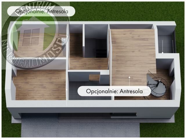 Na parterze domu znajduje się salon z aneksem kuchennym i jadalnią, kotłownia z pralnią, łazienka oraz wiatrołap.