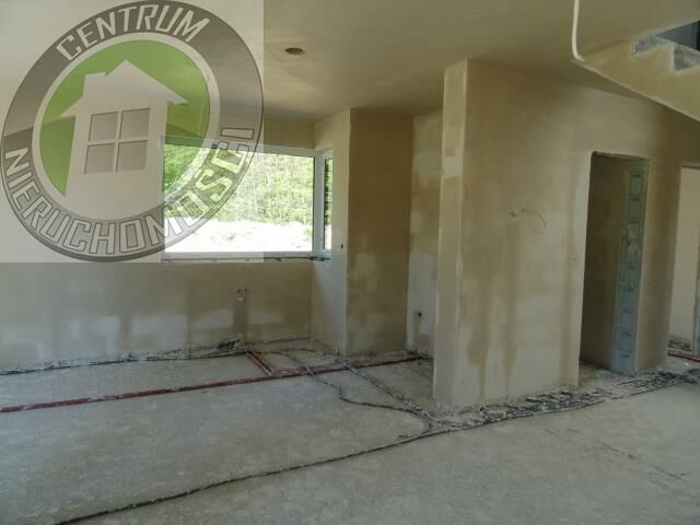 Dom w trakcie budowy- wybudowany z pustaka silikatowego, dach kryty dachówką ceramiczną, tynki cementowo- wapienne, ocieplenie styropianem gr. 15cm. Obecnie trwa montaż płyt g-k na poddaszu.