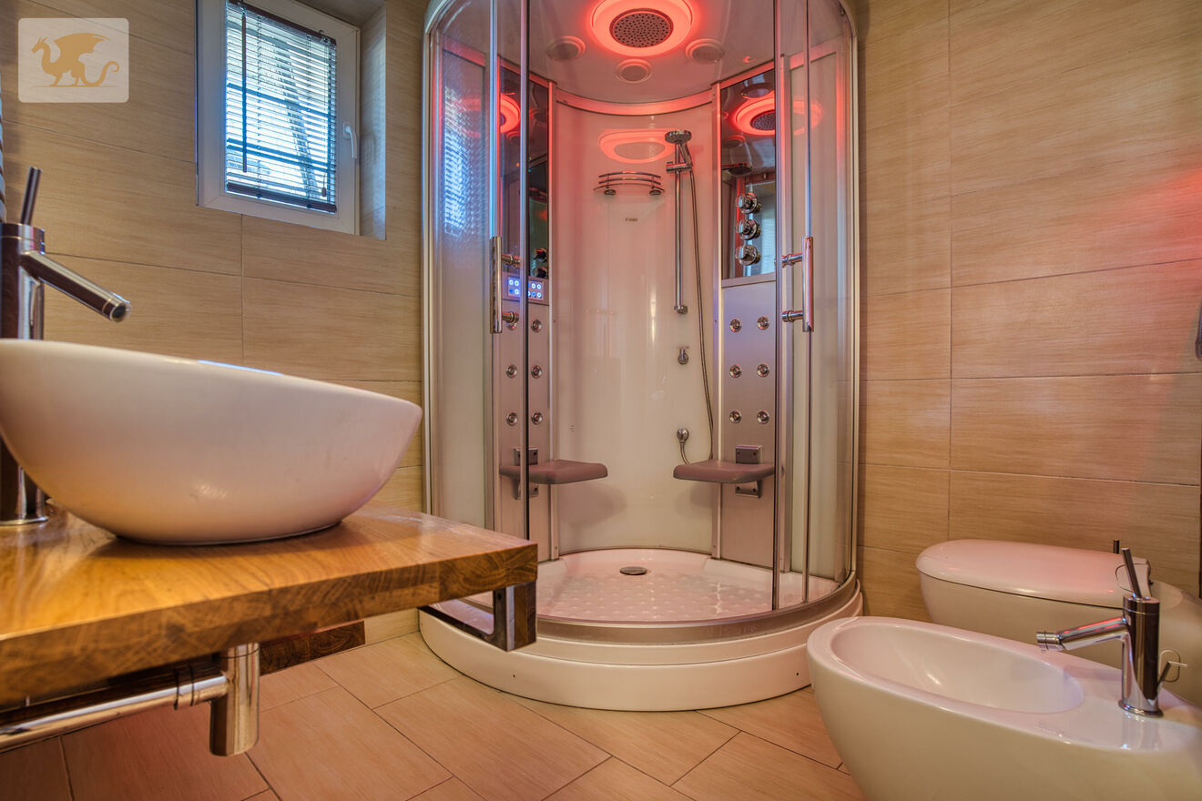 -Kolejne półpiętro: dwie duże sypialnie z garderobami oraz dodatkowa garderoba lub pomieszczenie gospodarcze